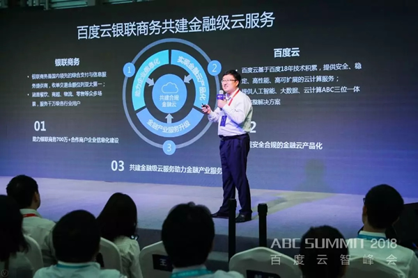在9月4日上海百度云智峰會(huì)的下午智能金融論壇中,百度云和銀聯(lián)商務(wù)共同宣布,雙方共建的武漢金融云節(jié)點(diǎn)上線發(fā)布,正式開(kāi)業(yè)。這意味著雙方自簽訂戰(zhàn)略合作協(xié)議之后,又往前邁出了堅(jiān)實(shí)的一步。