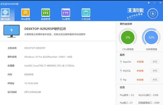 【2】:phpstudy和主機寶。phpstudy算老牌的了,也不錯。傻瓜式安裝。實話性能一般。主機寶也還可以。但是免費的不好找。現在僅僅支持阿里云主機和百度云主機。軟件安裝支持: