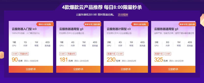 此次百度云活動(dòng)力度很大,4款爆款云產(chǎn)品推薦 每日8:00限量秒殺。活動(dòng)時(shí)間:2020年12月9日 - 12月30日;