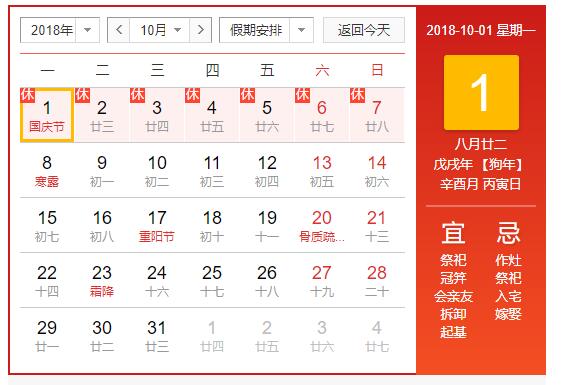 2018年國慶佳節即將來臨,西安凡高網絡科技有限公司現將放假安排通知如下: 國慶節假期安排為:10月1日至7日(1日,國慶節)放假調休,共7天。9月29日(星期六)、9月30日(星期日)上班。