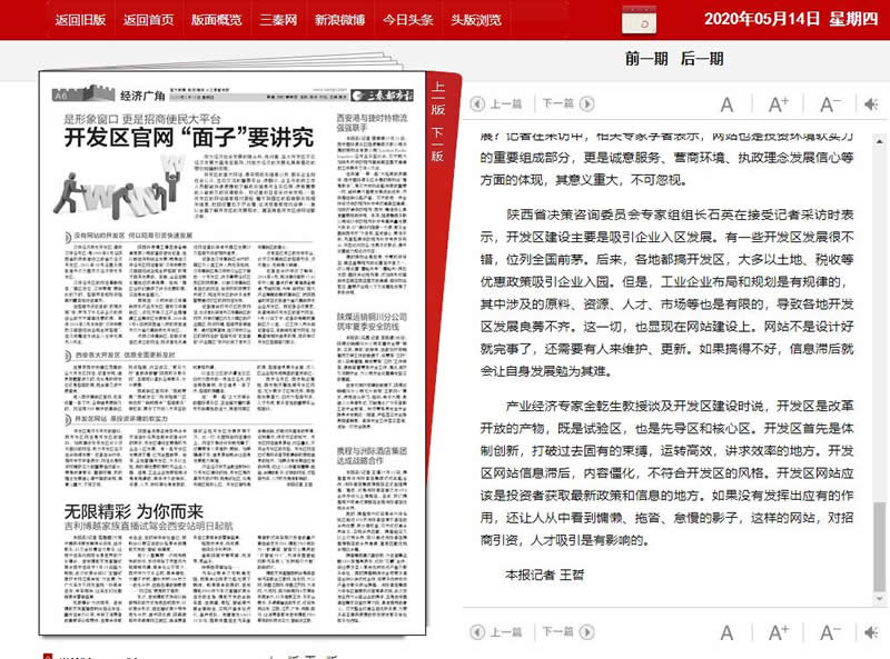 西安經開區、西安航空基地、西安航天基地等開發區網站,充分展示了區域優勢、特色和發展潛力,已成為招商引資、人才引進、服務百姓的重要平臺和窗口。