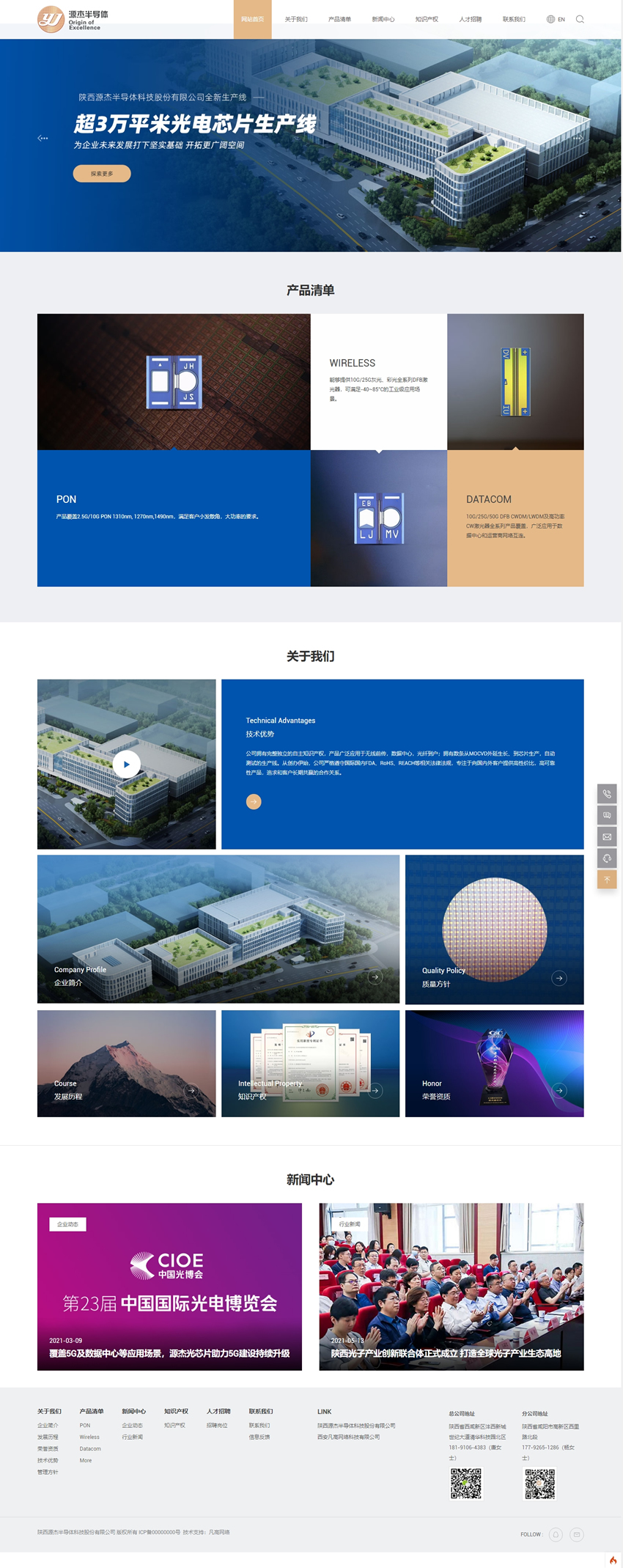 陜西源杰半導體科技股份有限公司成立于2013年1月28日,專注于進行高速的半導體芯片的研發、設計和生產,是中國第一家從半導體晶體生長,晶圓工藝,芯片測試與封裝全部開發完畢,并形成工業化規模生產的高科技企業。產品涵蓋從2.5G到50G InP激光器芯片,擁有完整獨立的自主知識產權,從最終的使用場景來看,產品廣泛應用于光纖到戶、數據中心與云計算、5G移動通信網絡、通信骨干網絡、工業物聯網等。經過多年的穩健發展,公司產品的技術先進性、市場覆蓋率和性能穩定性位居行業前列。