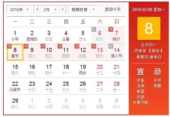 放假時(shí)間:2016年2月7日-2月13日(放假七天)