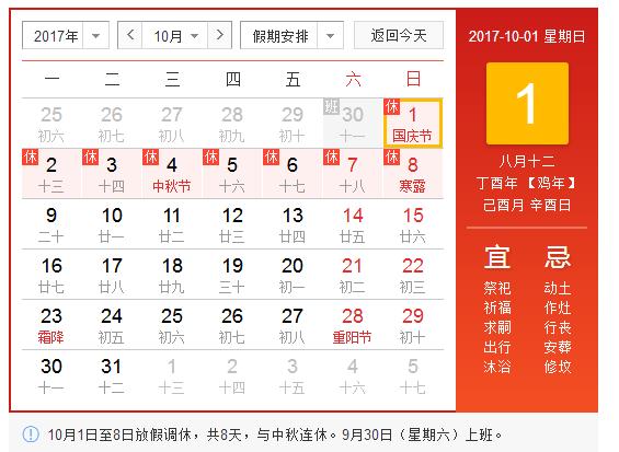10月1日(星期日)至8日(星期日)放假調休,共8天。9月30日(星期六)上班。網站售后熱線029-88630511 24小時開通。客戶如果遇到任何售后或者其他疑問可以隨時與我們聯系。 西安凡高網絡科技有限公司全體員工祝您雙節快樂!