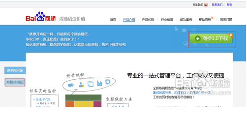 首先登陸百度官網(wǎng)可以看到百度現(xiàn)在推出了標(biāo)準(zhǔn)版的百度商橋,那么我們就開始一步步的來使用這個(gè)百度推出的功能