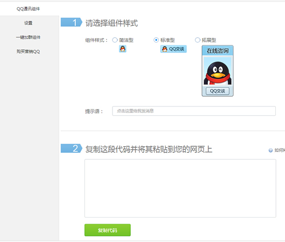 2.選擇QQ交談組件的樣式,復制代碼給您的網站制作公司添加到網站上