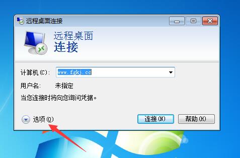 1、首先打開遠程桌面,在打開的“遠程桌面連接”窗口中點擊“選項”按鈕
