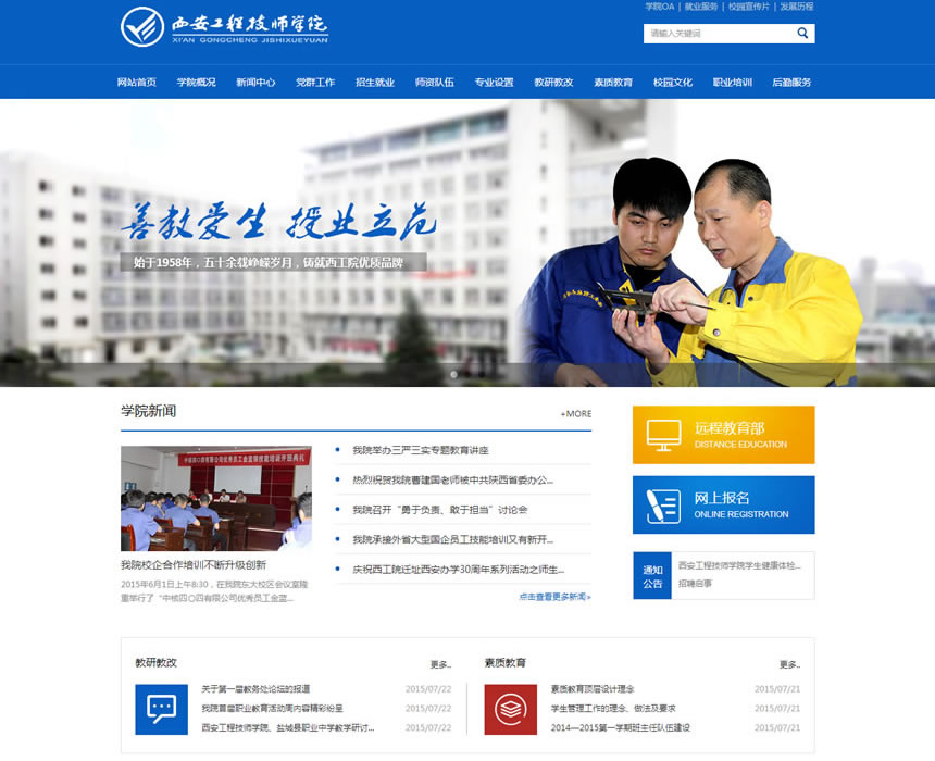 學校簡介:介紹學校的專業模塊。以圖文并茂的形式突出介紹學校的辦學理念與目標追求、領導班子、學校榮譽、校園風光等。