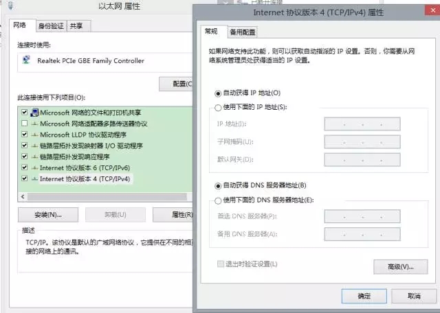 在電腦桌面右下角的網絡圖標上鼠標右鍵,然后點擊打開“網絡和共享中心”——然后點擊左側的“更改適配器設置”,接下來在當前的聯網網絡連接名稱上,右擊鼠標,選擇“屬性”,最后在網絡連接屬性窗口中選中“Internet 協議版本 4 (TCP/IPv4)/屬性”,之后就可以設置DNS,如下圖所示。