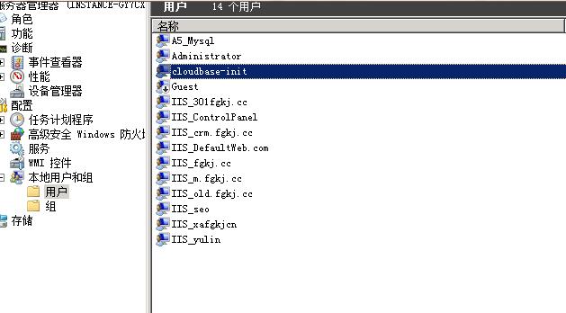 2、服務管理器-本地用戶和組-用戶- 選擇 cloudbase-init 右鍵,刪除。