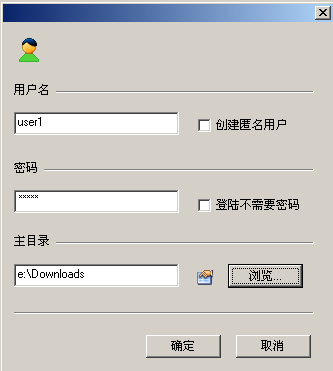 6、再點 ,輸入用戶名和密碼,在選一個目錄:(用戶登陸后進入該目錄)