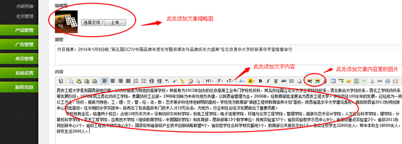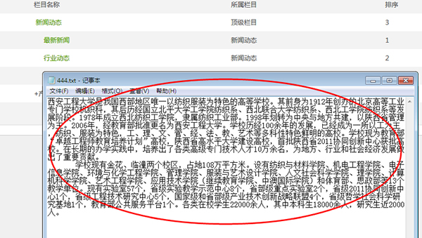 2.選擇好了欄目在添加之前切記所有的文字資料一定記得要先經過記事本復制再粘貼,因為我們的資料可能來源于各種地方,字體,大小甚者顏色等都不一樣,直接粘貼到后臺添加就會造成各種的亂。所以一定記得先經過記事本保存然后再粘貼添加。