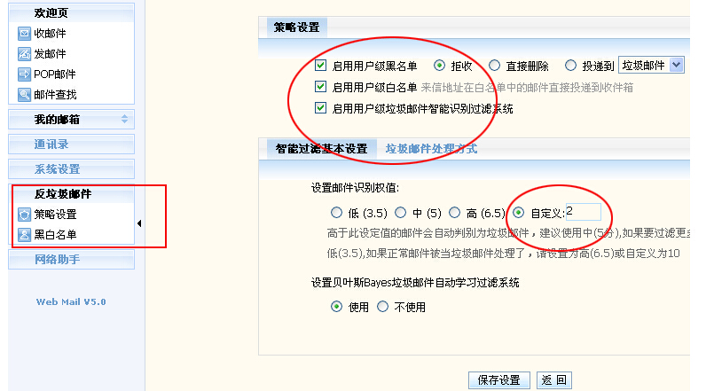 2.建議通過(guò)Webmail登錄您的郵箱后進(jìn)行一些必要的反垃圾郵件設(shè)置。