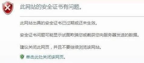 有時候訪客在訪問某企業網站的時候,出現安全證書錯誤的情況,怎么回事呢?還以為是斷網了,其實不是,只需要對某些選項修改設置即可。接下來,小編就來教教大家瀏覽器提示安全證書錯誤的具體解決方法。首先應該排除下是否證書到期,如果到期的話需要首先續費。