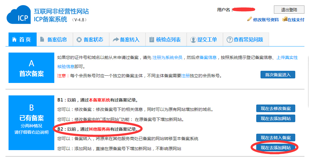 如果您在備案過程中遇到之前做過網站備案,但是由于時間久也找不到之前備案公司了或者別的原因需要更換備案點的,現在可以不用那么麻煩去轉入之前備案再增加備案了,只需在新的備案平臺注冊,例如我們的西部數碼備案中心,您可以直接選擇增加備案即可,之前備案信息無影響,只需添加新的備案信息就可審核,圖下圖選擇B備案,直接添加即可: