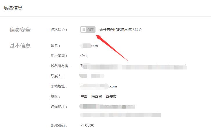 具體操作步驟為:首先進入域名管理控制面板---點擊隱私保護按鈕--開啟---成功