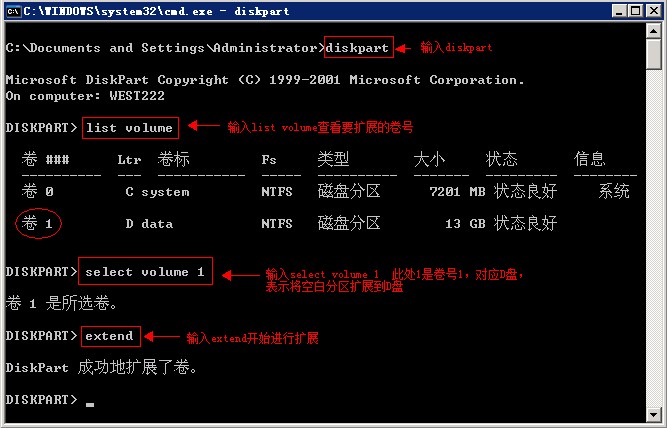 list volume 回車(顯示卷,找到D盤卷號(hào),如:卷1)