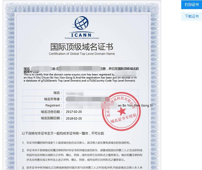 所謂域名證書,就是用電子證書的格式,標(biāo)明了注冊(cè)域名、注冊(cè)所有人的中文和英文名稱、注冊(cè)成功的時(shí)間和域名注冊(cè)到期時(shí)間這幾項(xiàng)內(nèi)容。域名證書用電子文書的形式,確定了域名注冊(cè)者對(duì)域名的擁有權(quán)以及擁有時(shí)限,對(duì)于確立域名的歸屬有決定性的作用,也是受法律認(rèn)可的證書文件。域名證書非常重要,對(duì)域名的許多操作都有著關(guān)鍵的作用,比如域名過(guò)戶,網(wǎng)站備案等等。