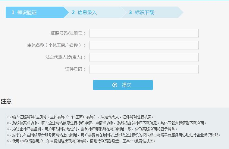 西安市工商局注冊的企業請登錄:http://wljg.xags.gov.cn/bssq.do 嚴格按照提示輸入的內容填寫。填寫成功會出現一段代碼。把這段代碼用記事本的格式發給給咱們制作網站的公司進行投放和部署。省局注冊企業請登錄http://wljg.snaic.gov.cn進行申請。流程是一樣的。