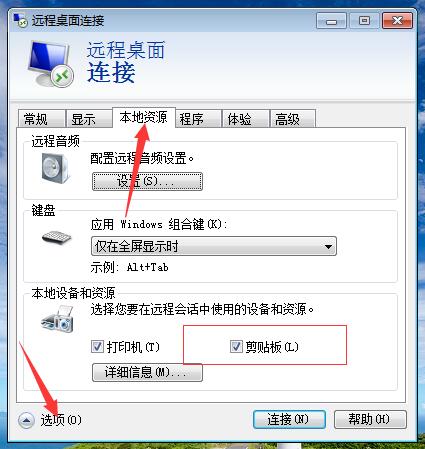 首先打開服務器遠程桌面——本地資源——勾選剪貼板