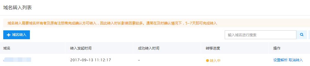 轉入注意事項:域名轉入需要域名所有者及原有注冊商完成確認方可轉入,因此轉入時長影響因素較多。通常在及時確認情況下,5-7天即可完成轉入域名轉入