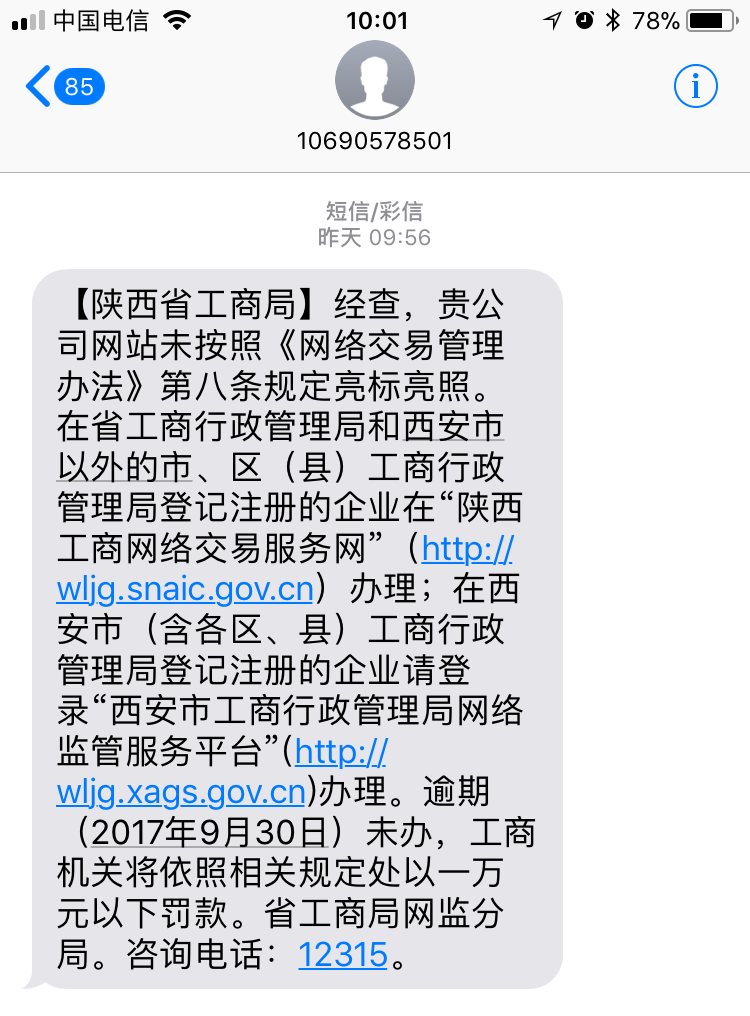 已經亮照,為什么還收到工商所短信通知. 網絡已經亮照,還是收到了工商局短信通知。是什么原因? 我們的很多客戶也反應類似的問題。工商網站檢測沒有亮照的依據是在地區通信管理局用企業資質備案的的名下所有網站。只要備案過的域名就算。舉例:西安凡高網絡科技有限公司備案了6個域名,其中3個域名不用打不開。除了能訪問的網站要亮照以外,其他不能訪問的網站也需要亮照。如果網站確實不用,需要到陜西通信管理局進行網站注銷手續。
