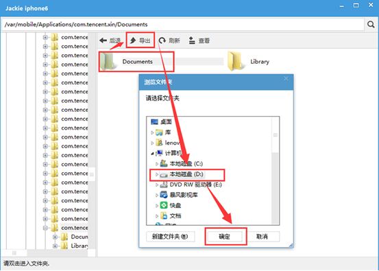 5,進入var/mobile/Applications/com.tencent.xin/,然后把里面的Documents文件夾導出到電腦上。