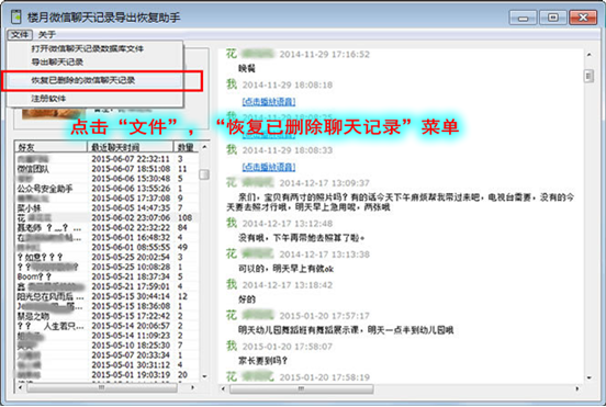 7,接著點擊“文件”“恢復已刪除微信聊天記錄”對刪除的微信數據進行恢復。