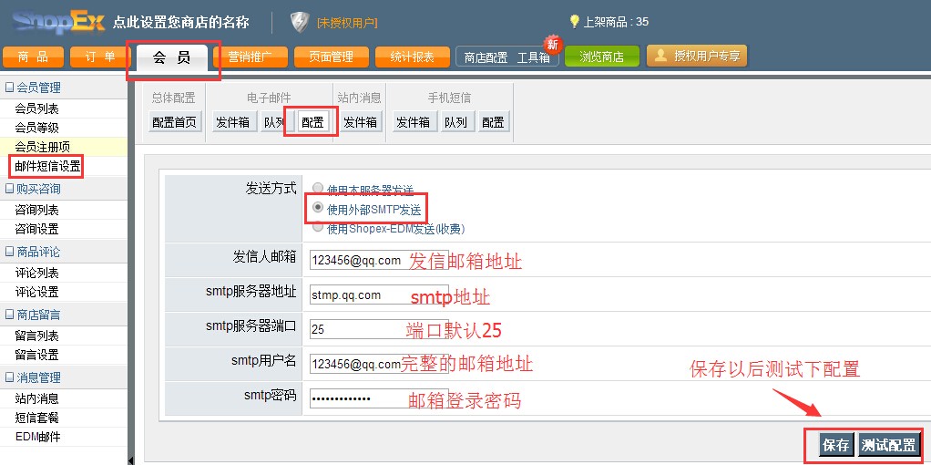 注意:設置調用第三方smtp均需要對方開啟smtp服務,設置正確若不能發送需要檢查核實賬號密碼是否正確。